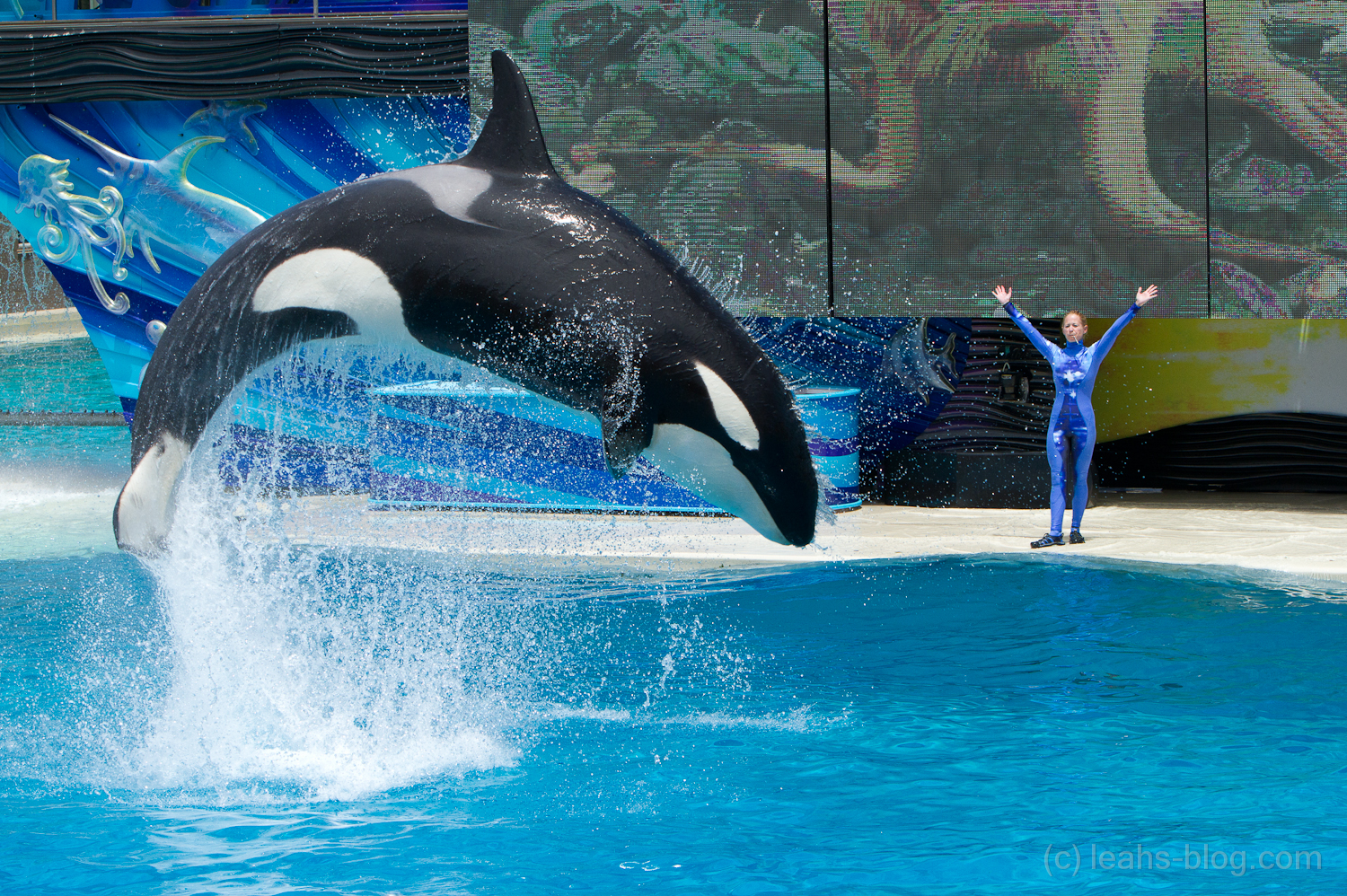 Die erste Nacht im Wohnmobil war sehr gewöhnungsbedürftig, vorallem da unsere „Nachbarn“ noch bis spät in die Nacht draußen geredet haben. Am Morgen sind wir relativ früh aufgestanden und haben dann erstmal schön gefrühstückt. Es war schon sehr warm obwohl es erst so um die 9 Uhr waren. Nachdem wir uns fertig gemacht und alles verstaut hatten sind wir zu Sea World gefahren. Dort hatten wir auch kein Problem mit dem Parken, da es extra Parkplätze gab. Der Park ist sehr groß und es gibt viel zu sehen, es werden Shows gezeigt und man kann sich noch andere Sachen anschauen. Zuerst waren wir bei einer Haustier-Show mit Katzen und Hunden und noch vielen anderen Tieren. Nachdem sind wir zu Scamu, einem „Killerwal“ gegangen, wo wir uns wieder eine Show ansahen. Es war beeindrucken, was die Tiere alles drauf hatten.