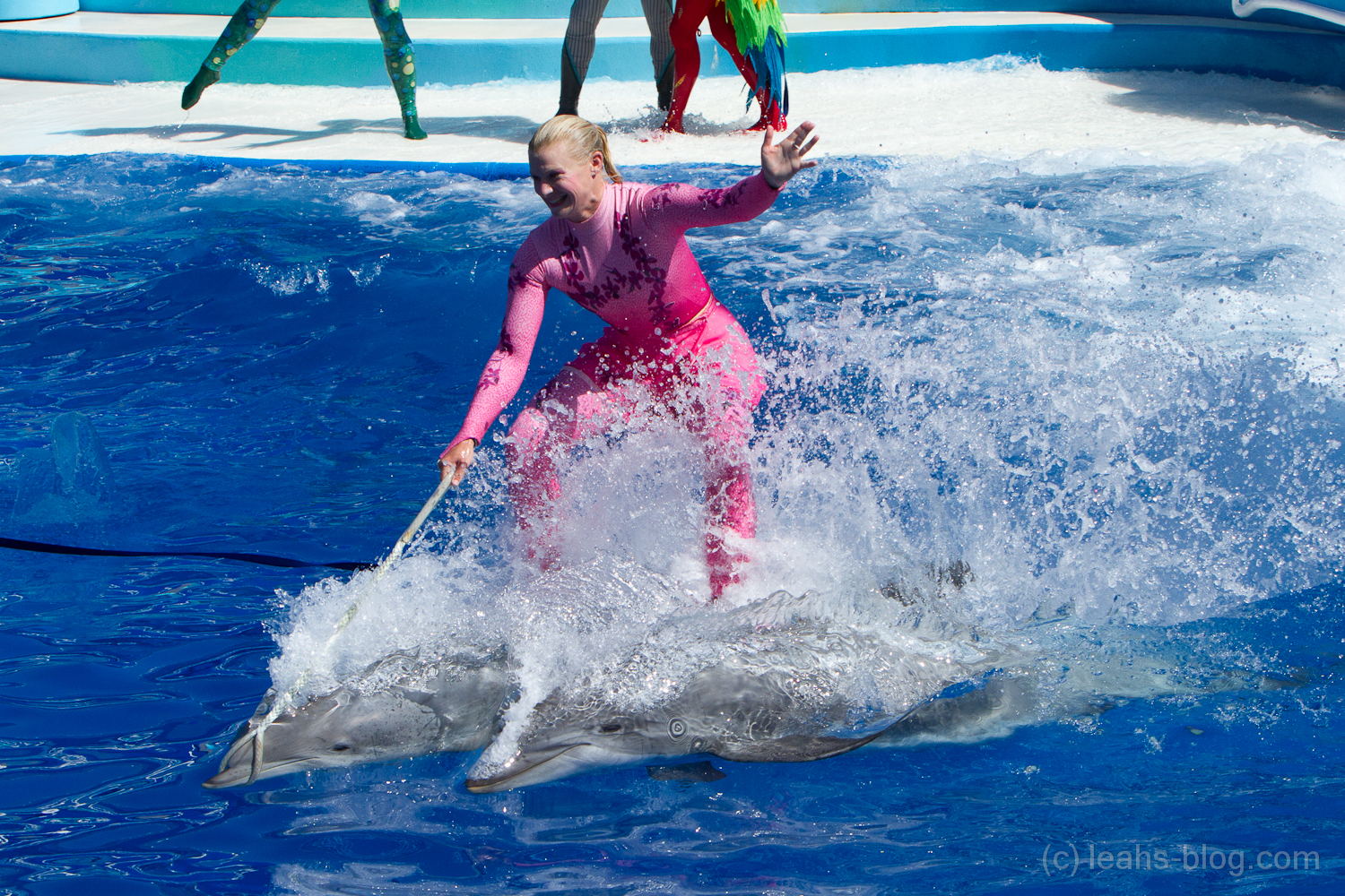 Danach sind wir erst einmal etwas in unserem Wohnwagen essen gegangen und haben uns etwas ausgeruht. Anschliessend sind wir wieder zurück und haben uns eine Delfin-Show angeschaut, die ich am fazinieresten fand, da es wie eine richtige Show war und nicht einfach nur, wo ein Delfin im Wasser herumspringt.