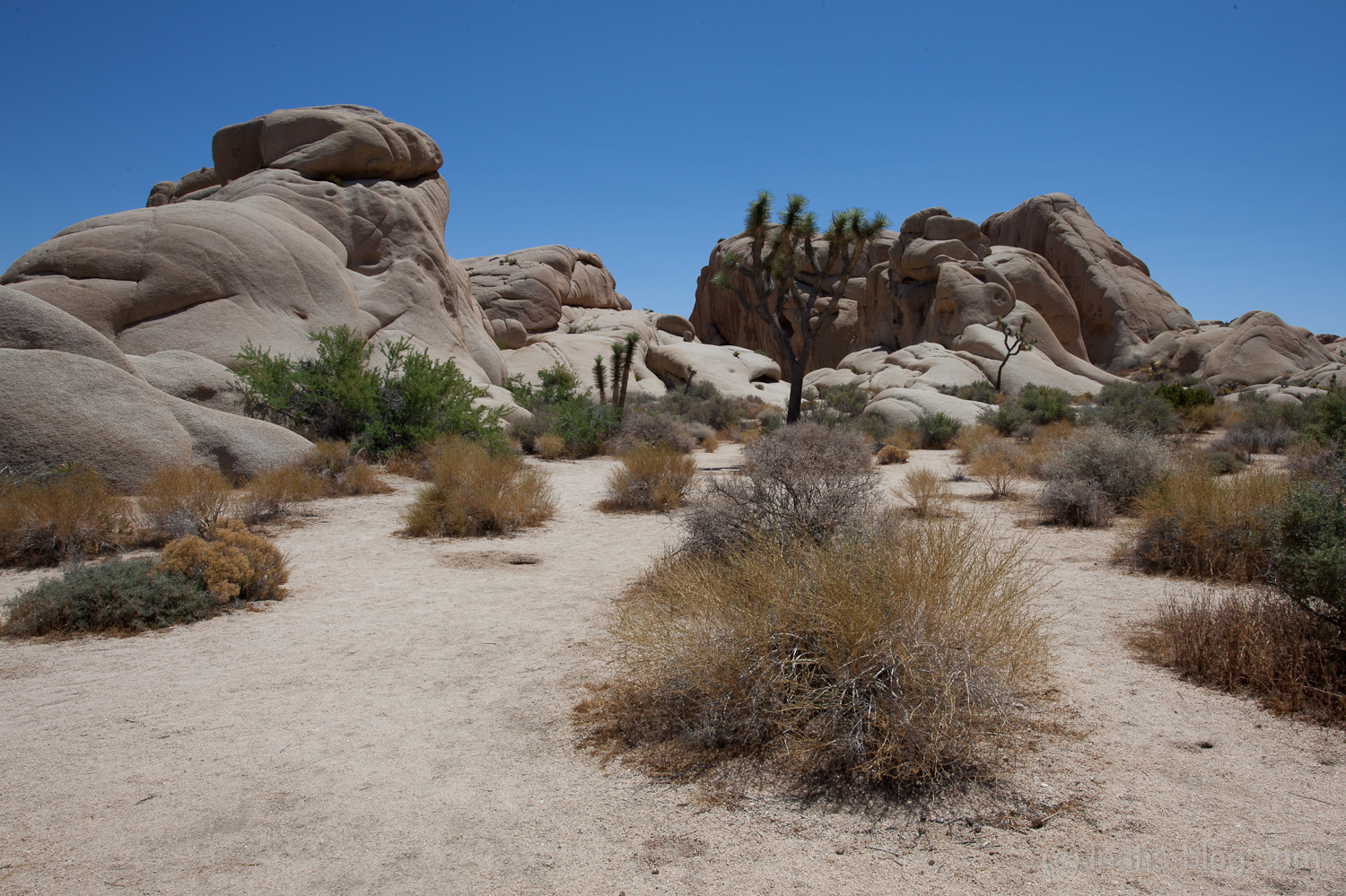 Als wir dann den Joshua Tree Park erreicht hatte und wir das erste Mal ausgestiegen sind um zu fotografieren, kam uns eine richtig starke Hitze entgegen. Wie uns ein Mann später an einer Tankstelle sagte, waren es ungefähr 45 Grad.