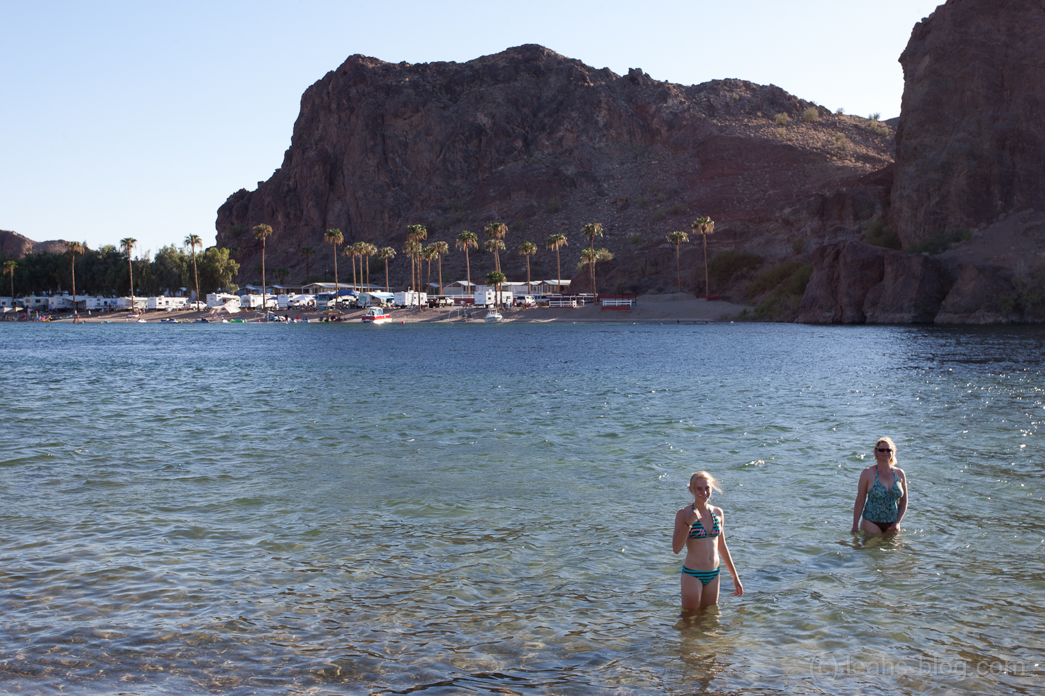 Da es so heiß war, sind wir herunter an den Colorado gegangen und sind dort dann schwimmen gegangen. Das Wasser war klar, wie ich es noch nie gesehen hatte und die Landschaft auch sehr schön – überall Felsen und Fluss um einen herum.