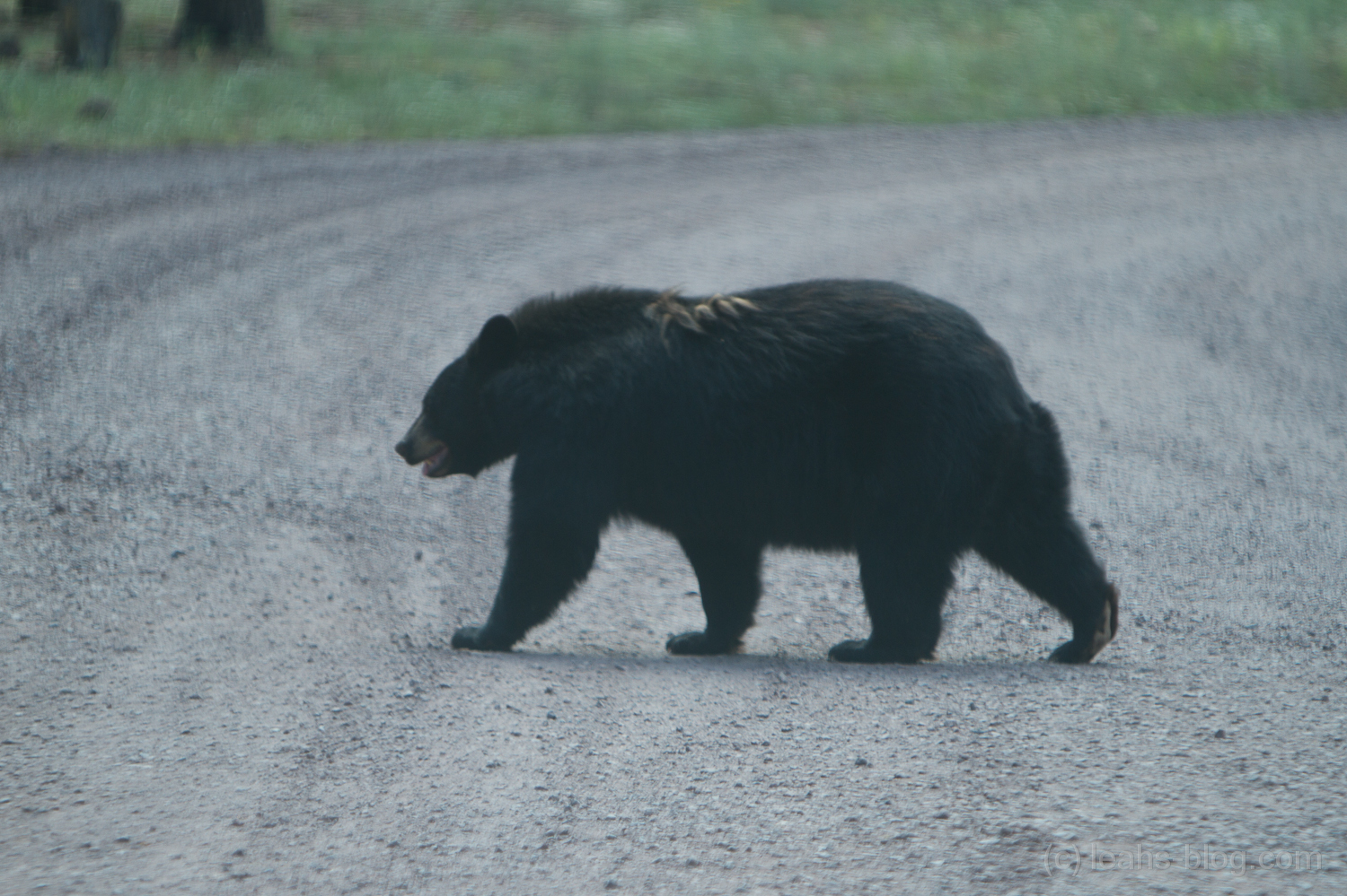 Die verschiedenen Tierbereiche waren durch einen Zaun abgetrennt. Als wir dann in den Bereich der Schwarzbären kamen, erklärte uns eine Frau noch kurz ein paar wichtige Sicherheitshinweise. Was ich sehr cool fand war, dass ein Bär gemütlich über die Straße ging und dann zwischendurch mal stehen blieb und sich Zeit ließ, obwohl wir da mit unserem Wohnmobil standen und gewartet hatten, dass wir durch konnten. :D