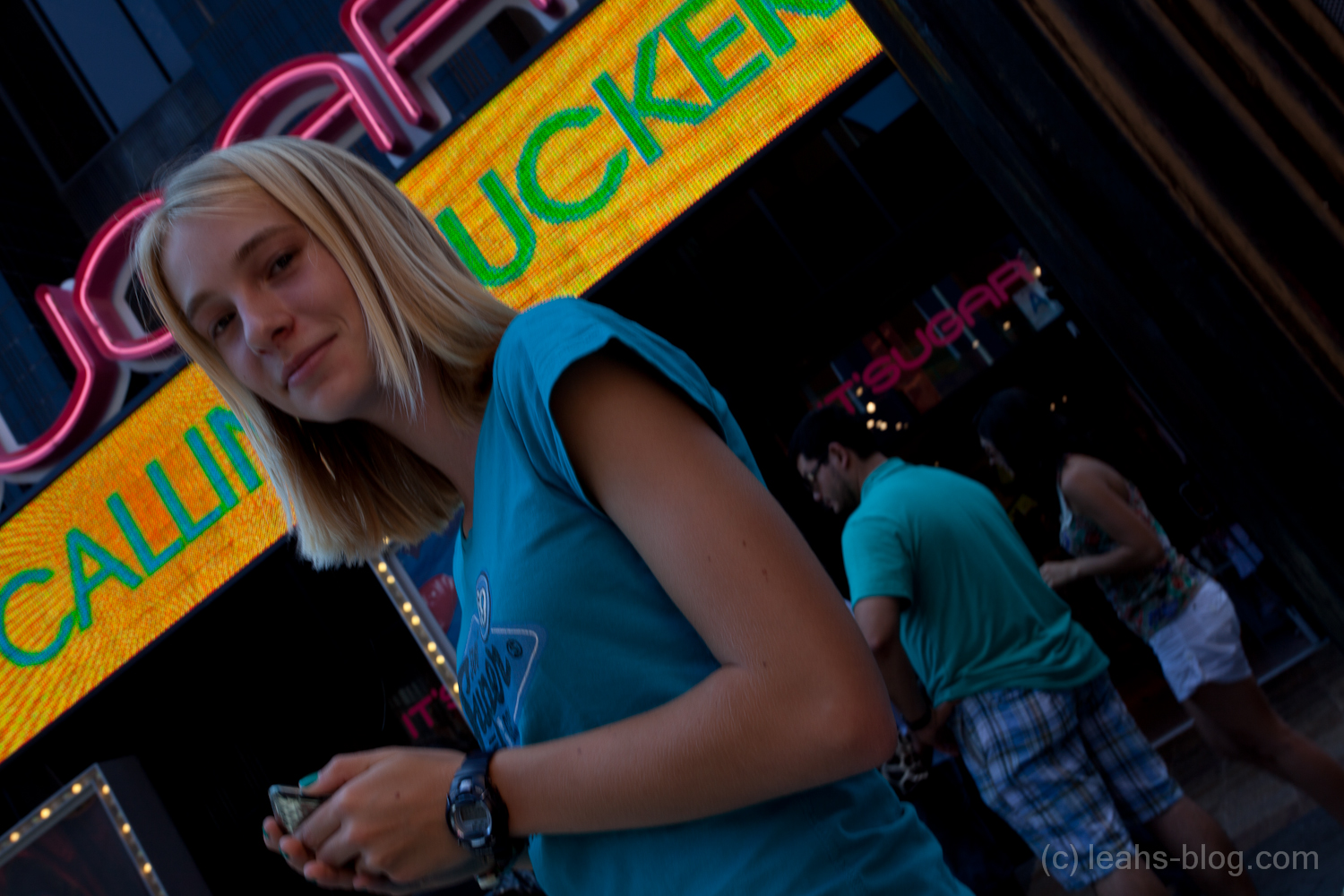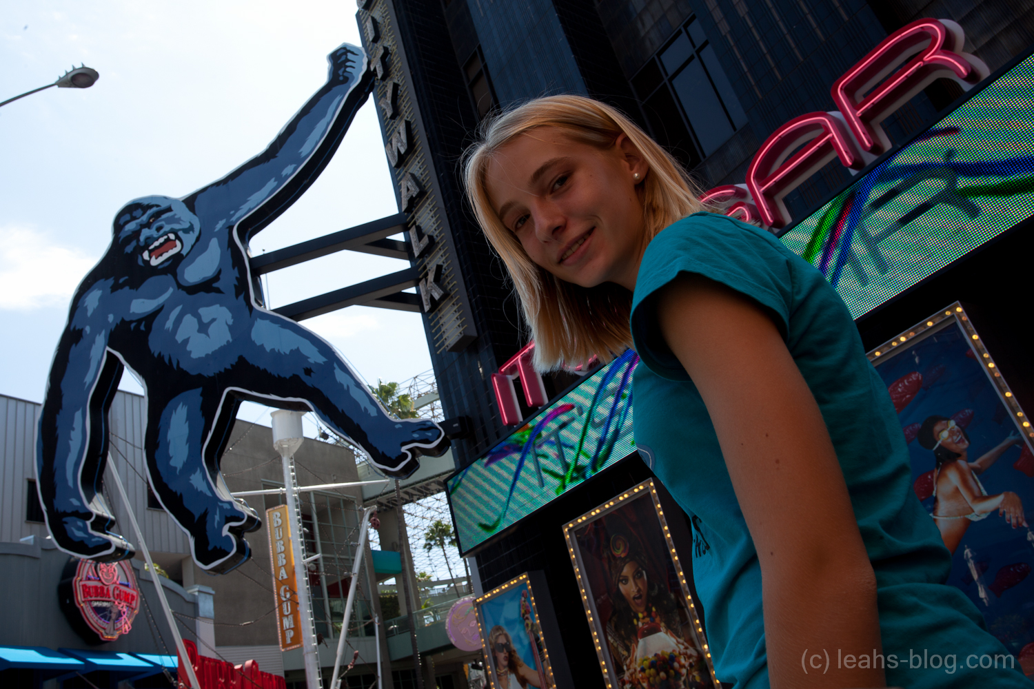Heute Mittag sind wir nach Hollywood zu den Universal Studios gefahren. Dort sind wir den Citywalk entlang gegangen. Das ist eine kleine Straße in den Bergen bei den Universal Studios mit kleinen Shops, diese zur abend Zeit beleuchtet sind, durch die Reklameschilder. Es gab viel zu sehen – von einer Bühne wo ab und zu Bands spielen bis zu einem Sockenladen, wo wirklich NUR Socken verkauft wurden.