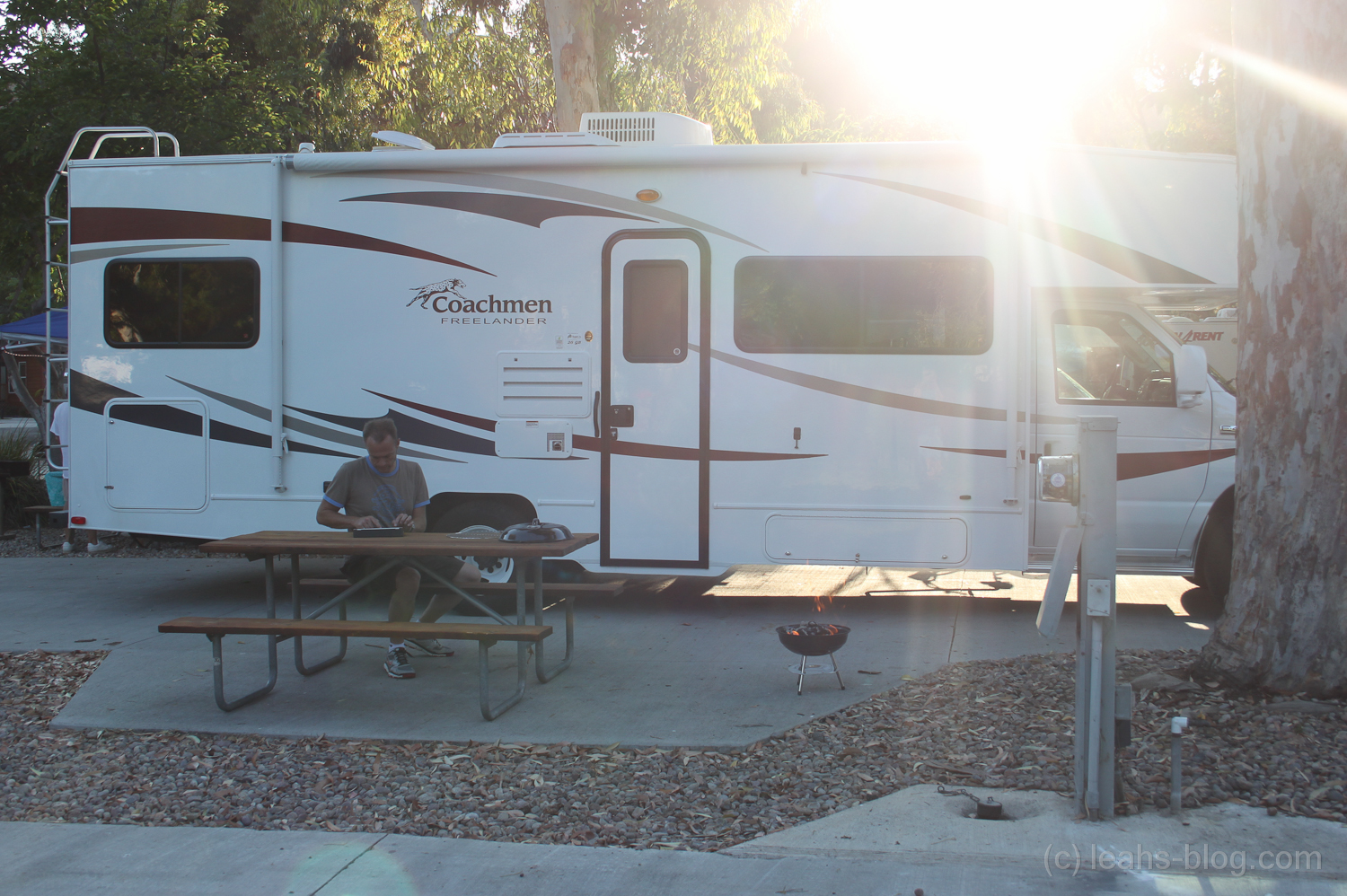 Heute Morgen sind wir zuerst mit unserem Mietauto zum Flughafen nach Los Angeles gefahren, da wir ihn dort abgeben mussten. Danach warteten wir ungefähr eineinhalb Stunden auf einen Shuttle, der uns zur Mietstation vom Wohnmobil bringen sollte. Als wir ankamen wurde meinen Eltern erstmal etwas erklärt und ich habe mich in der Zeit gelangweilt. Danach hat uns ein Mann das Wohnmobil gezeigt und einige Sachen, die wichtig sind bzw. die man wissen muss. Ich muss sagen, dass ich schon erstaunt bin, was man alles beachten muss. Nach dieser Einweisung sind wir zuerst zu einem Supermarkt gefahren, wo das erste Problem schon vor der Tür stand – das Parken. Ich glaube wir haben vier Parkplätze benutzt. :D Danach ging es weiter nach San Diego. Nach einer zweistündigen Autofahrt waren wir auf unserem Campingplatz angekommen. Mein Vater und ich steckten erst einmal den Strom etc an und mussten dann nochmal zu einem Supermarkt laufen. Währenddessen hatte meine Mutter angefangen die Koffer auszupacken. Abends haben wir gegrillt und uns einfach entspannt.