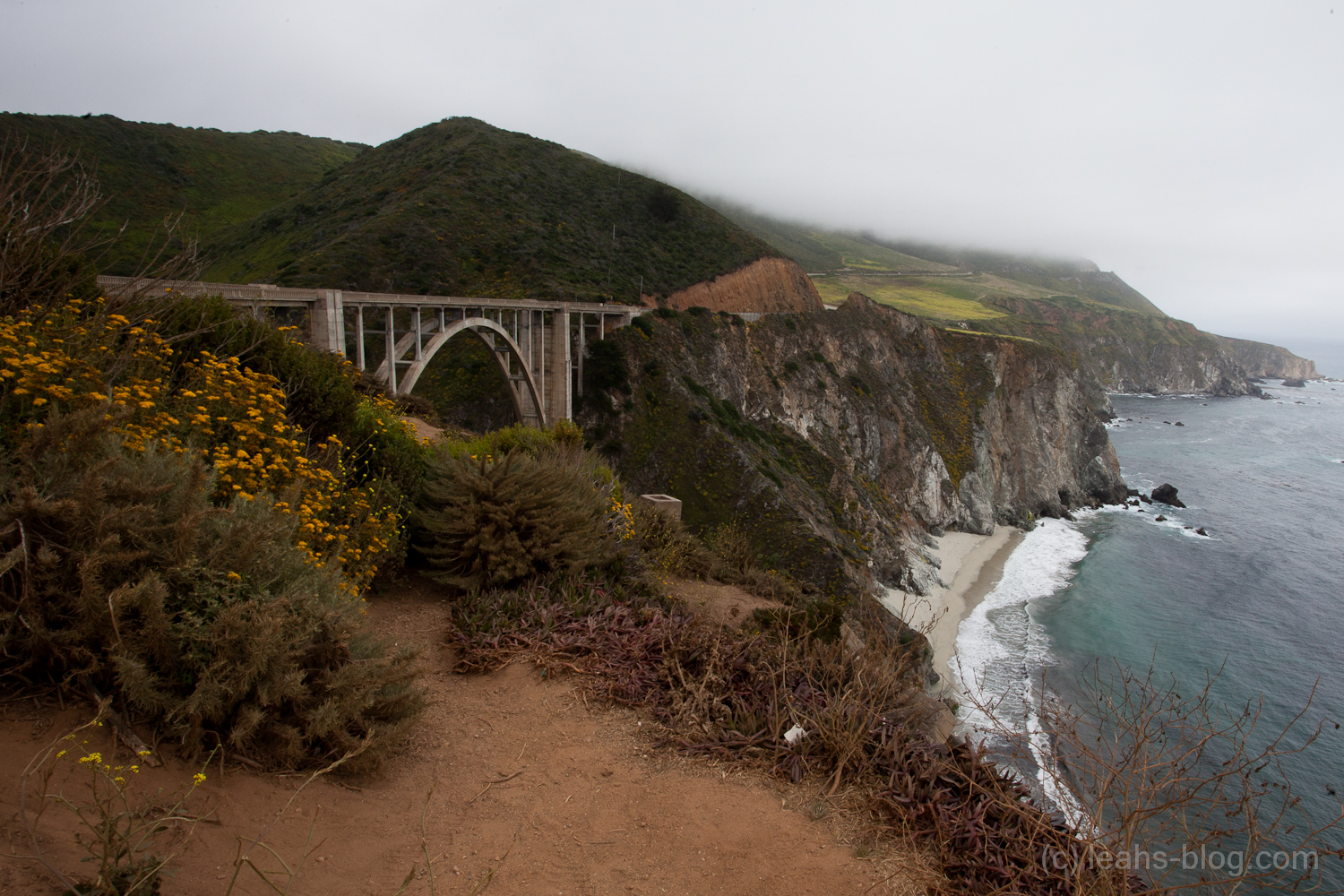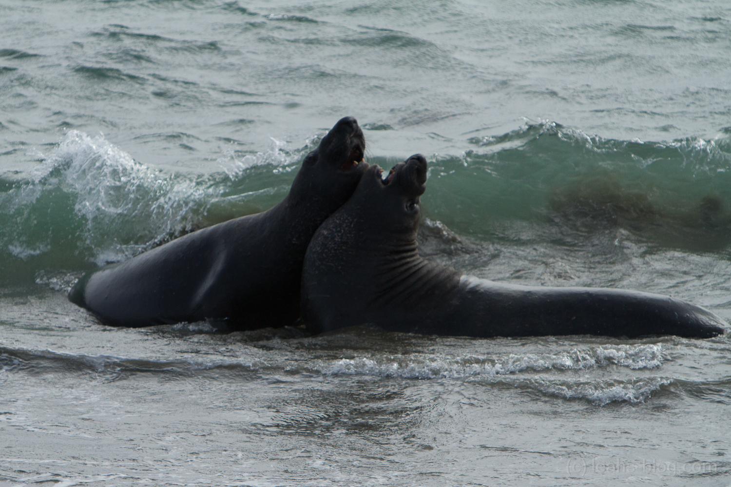 Dann ging es los über den Highway #1 nach San Simeon. Wir machten einige Stopps und schauten uns die bizarre Landschaft an. Einmal guckte ich aus dem Fenster und sah wie ein Vogel ins Meer abstürzte und ich sagte nur „Ohha, Absturz!“ Bis ich dann merkte, dass es ein Pelikan war, der wohl etwas zum Essen gefunden hatte…