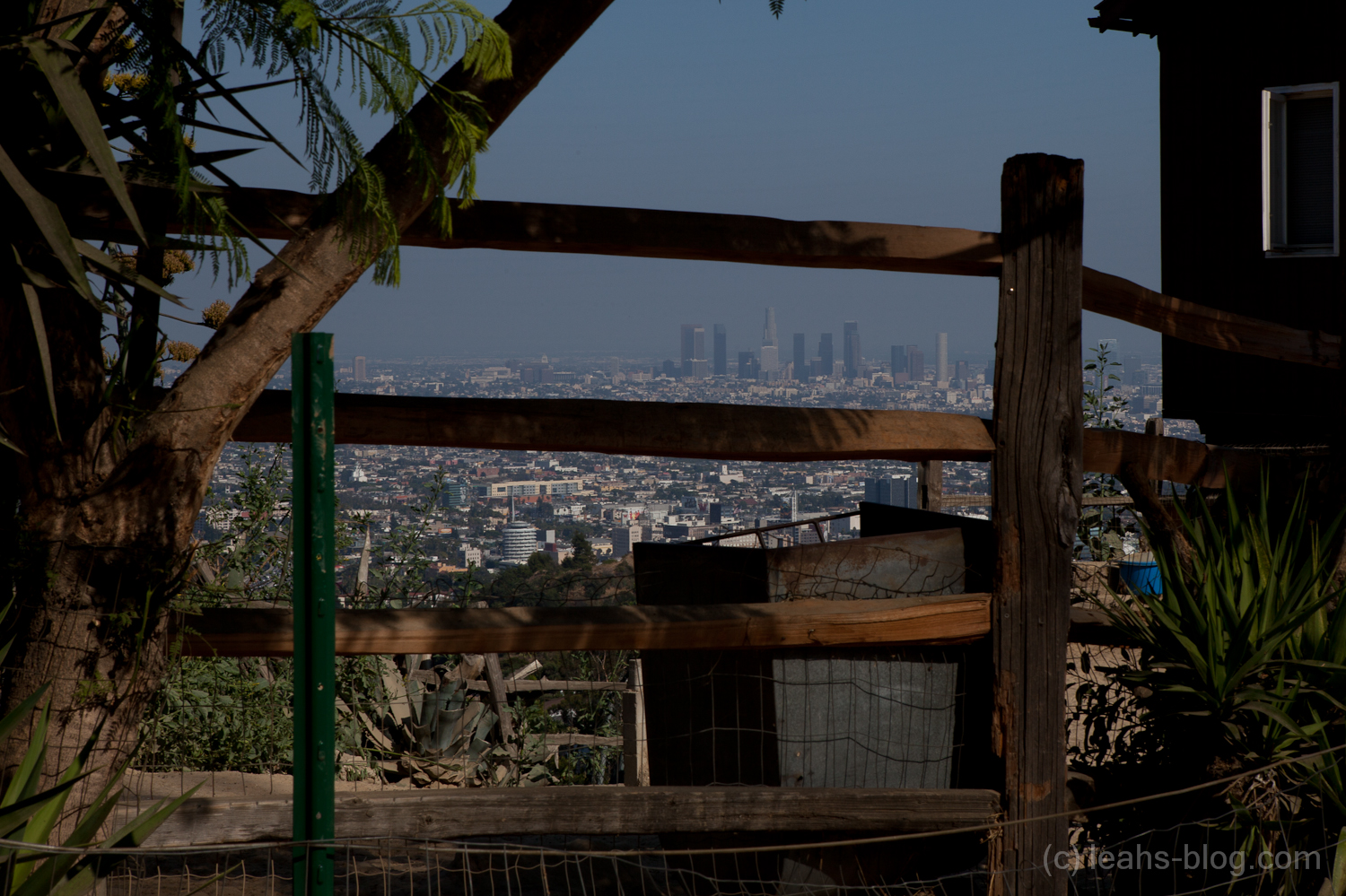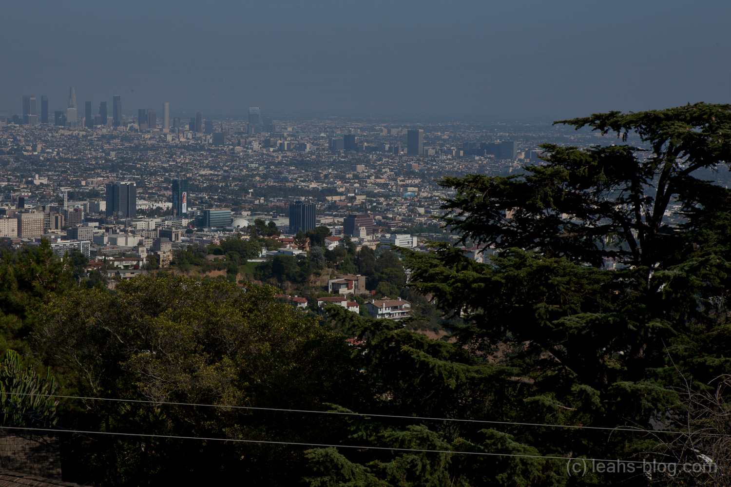 Anschließend haben wir noch das Hollywoodschild in den Bergen gesucht. Als wir es dann endlich gefunden hatten, wollten wir näher heranfahren, aber das Problem war wir wussten nicht genau wie. Also sind wir auf einen Berg gefahren, der aber leider der falsche Berg war. Von dort sah man das Schild aber nur von sehr weitem. Aber wir haben die Gelegenheit genutzt und ein paar Bilder von Los Angeles – Downtown gemacht. Wir haben uns trotzdem vorgenommen am Sonntag nochmal näher an das Hollywoodschild heranzufahren.