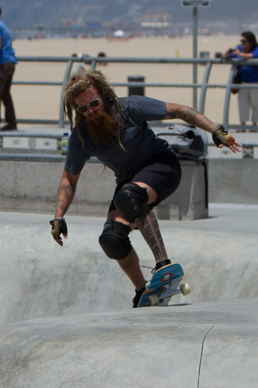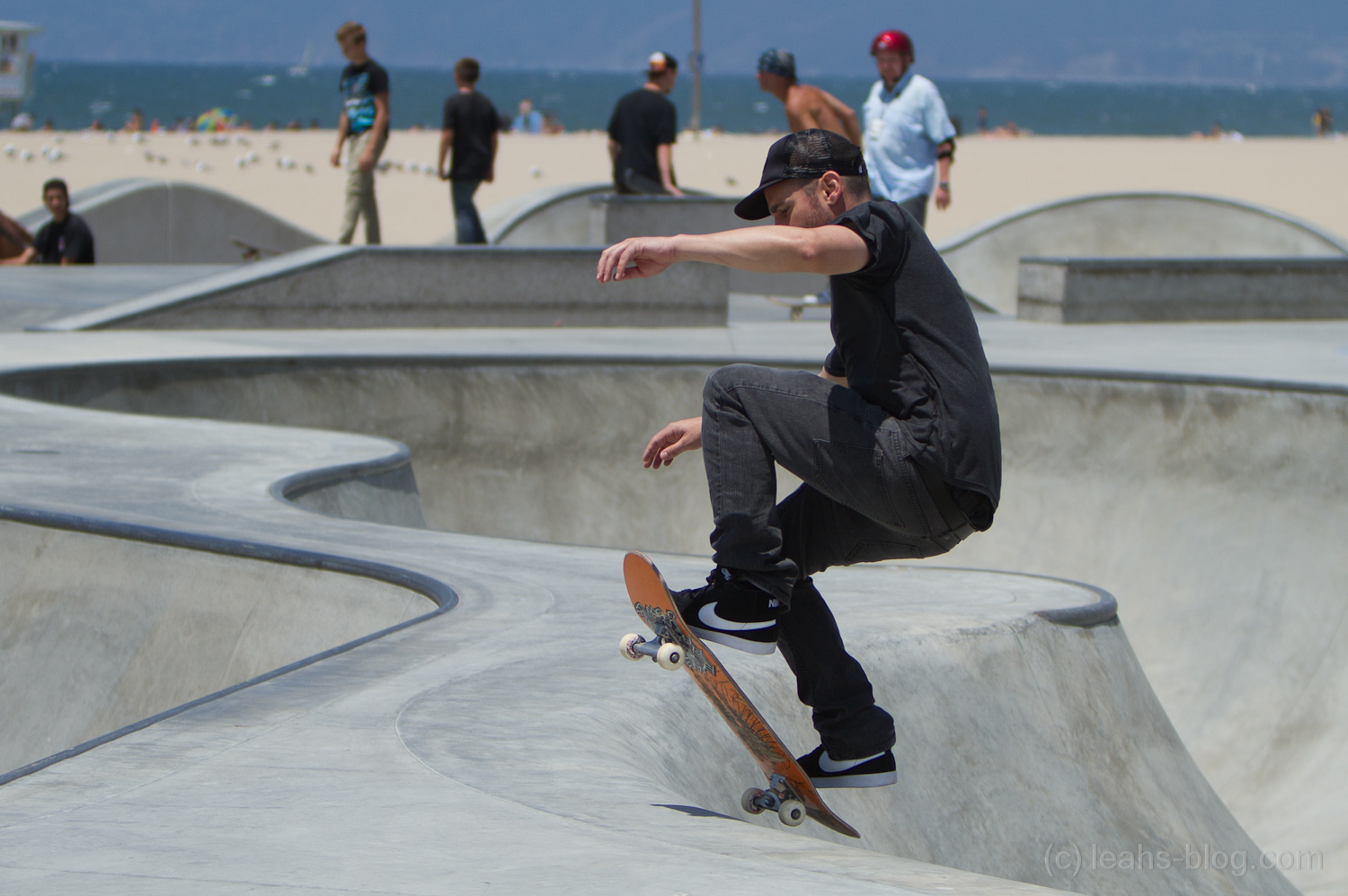 Später sind wir dann noch nach Venice Beach gefahren und sind am Strand entlang spaziert. Es war sehr viel los und schönes Wetter. Ein Mann zum Beispiel lief mit einer E – Gitarre herum und war sonst eher sehr verkommen. Vor allem auffällig waren die vielen afrikanischen Stände. Dort gab es auch noch eine Skateranlage, wo Kinder im Alter von acht Jahren hingegangen sind aber auch Männer im Alter von dreißig Jahren. Ich fand sehr cool, dass ein kleiner Junge immer wieder versuchte mit den Größeren mitzuhalten und dies auch das ein und andere Mal schaffte. Was ich aber relativ enttäuschend fand, dass die Älteren sich immer vor den Kleinen vorgedrängelt haben.