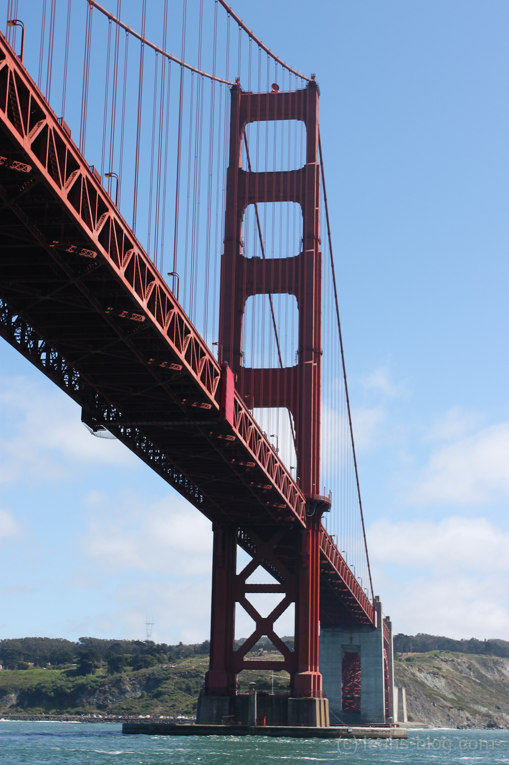 Dann ging es weiter zum Pier 39, wo wir eigentlich mit einem Schiff nach Alcatraz – eine frühere Gefängnisinsel – fahren wollten. Ein Mann sagte uns jedoch, dass diese für die nächsten zwei Wochen ausgebucht sei. Also machten wir eine einstündige Schiffstour zur Golden Gate Bridge und an Alcatraz vorbei. Anschließend ging es den ganzen Weg wieder zu Fuß zurück, da die Warteschlange beim Cable Car zu lang war. Auf dem ganzen Fußmarsch machten wir immer mal wieder Abstechen in verschiedenste Geschäfte, Starbucks war auch dabei.